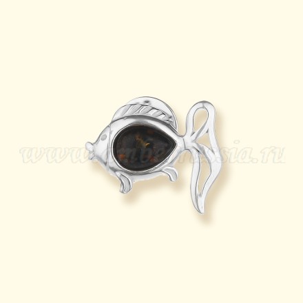 Брошь "Рыбка" Посеребрение с Янтарем артикул 42320345 Вы можете заказать в нашем интернет магазине "Янтарь России" с бесплатной доставкой по всей России
