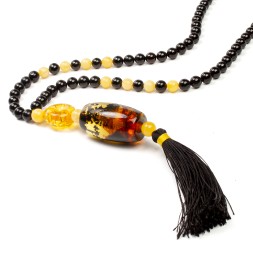 Бусы с кулоном "Слива" из Янтаря с инклюзом