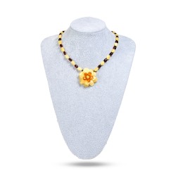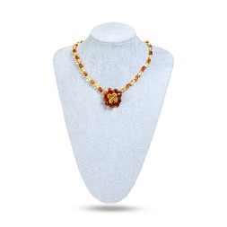 Бусы с кулоном "Цветы" из Янтаря (резьба)