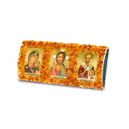 Автомобильная икона "Триптих" с Янтарем артикул 64142000 Вы можете заказать в нашем интернет магазине "Янтарь России" с бесплатной доставкой по всей России