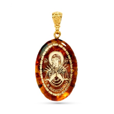 Кулон-образок "БМ Семистрельная" из Янтаря и юв.смолы артикул 41411106 Вы можете заказать в нашем интернет магазине "Янтарь России" с бесплатной доставкой по всей России