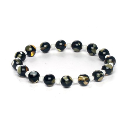 Браслет "Шар" из Янтаря и юв.смолы с агатом артикул 39173117930 Вы можете заказать в нашем интернет магазине "Янтарь России" с бесплатной доставкой по всей России