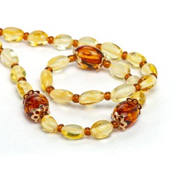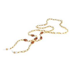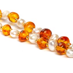 Бусы для очков "Дуэт" из Янтаря и Жемчуга