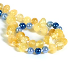 Бусы детские "Мятый шар" из Янтаря с перламутром